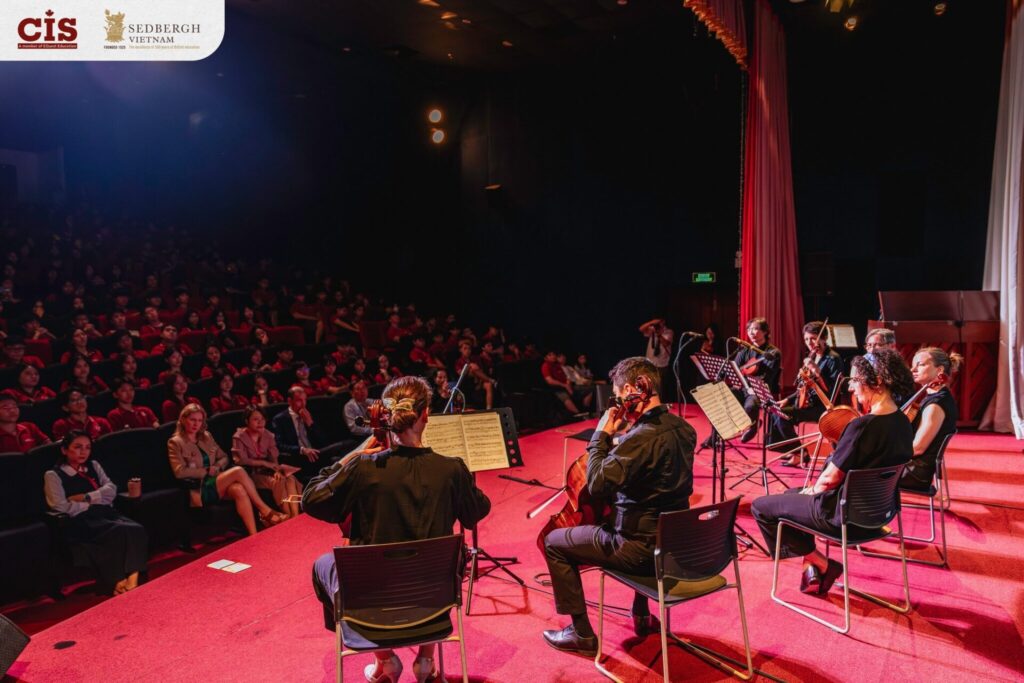 Từ âm vang sâu lắng của cello đến sắc âm trong trẻo của violin, buổi hòa nhạc giao hưởng “Cello Fundamento to School” đã mang đến cho học sinh CIS & SSV một trải nghiệm nghệ thuật tinh tế và giàu cảm hứng. Trong không gian khán phòng, những bản hòa tấu cổ điển của Beethoven, Boccherini, Mendelssohn và Vivaldi đưa người nghe đi qua nhiều cung bậc cảm xúc khác nhau.