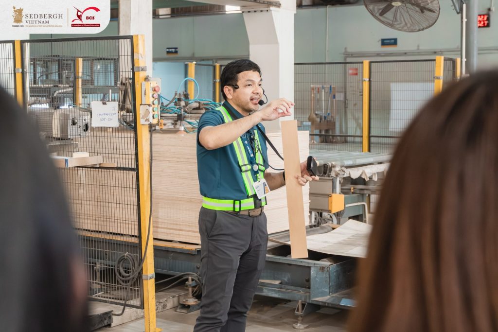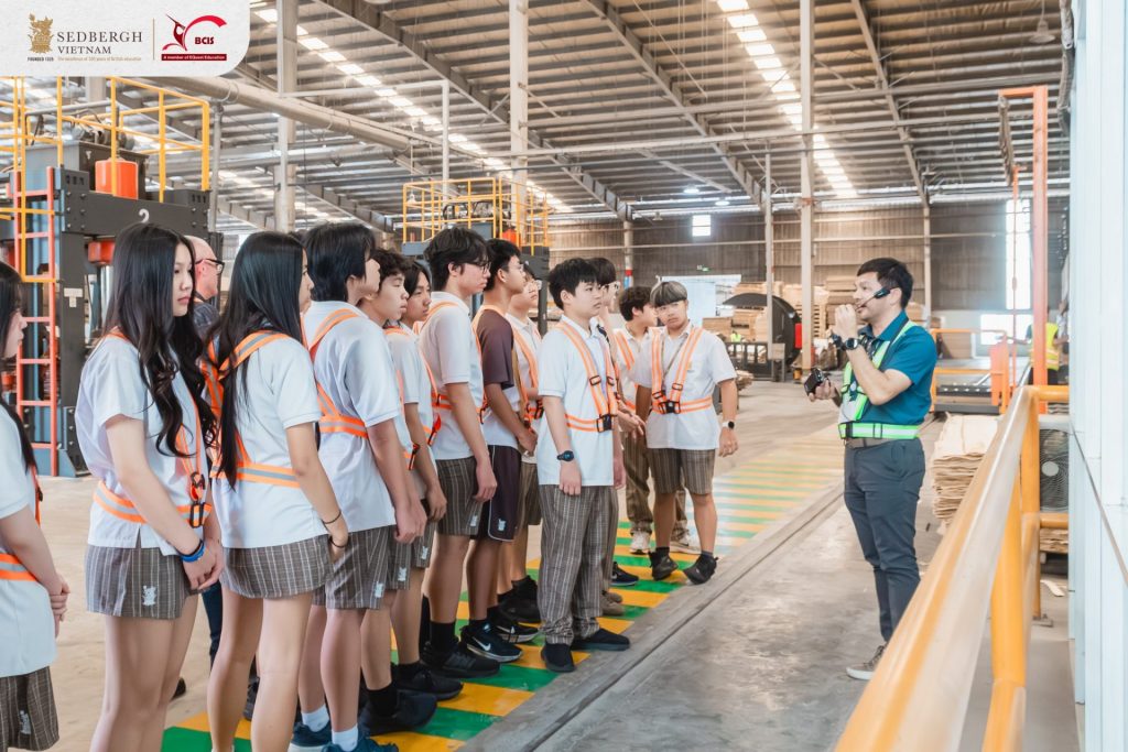 Tiếp cận doanh nghiệp từ sớm chính là cách để học sinh hiểu rằng việc học không tách rời thực tiễn. Thông qua chuyến tham quan thực tế tại nhà máy TEKCOM – doanh nghiệp Việt Nam chuyên sản xuất ván ép và các sản phẩm nội thất tại Bình Dương, vận hành theo định hướng hiện đại và quy mô quốc tế – học sinh lớp 9 chương trình Đơn ngữ IGCSE tại Sedbergh Vietnam đã có cơ hội bước ra khỏi lớp học để quan sát cách kiến thức được vận hành trong thực tế.