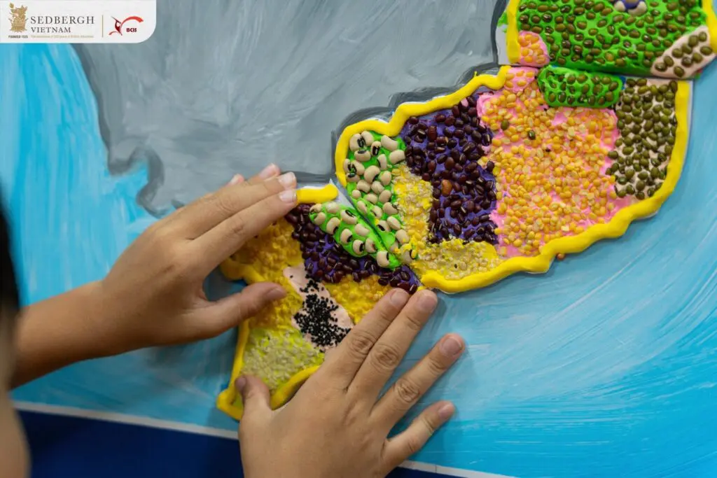 Art lessons at Sedbergh Vietnam Primary became more vibrant than ever with an engaging activity: creating a map of Vietnam using familiar materials such as beans and seeds.